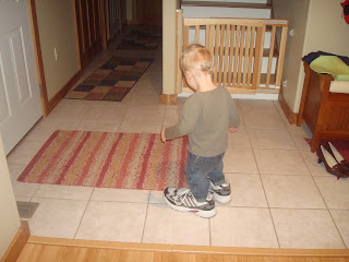 We got a new bowling set for Griffin that is perfect for our upstairs hallway. He's figured out how to get a strike already!